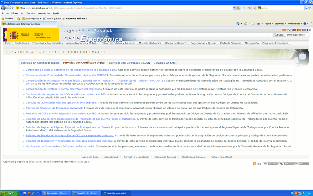 Entramos en la página de la seguridad social, en la Sede Electrónica: