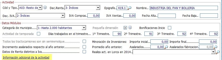En la ficha de la actividad, en la opción "Información adicional de la actividad" se indicará si se cumplen todas las condiciones exigidas para la aplicación del índice de pequeña dimensión:
