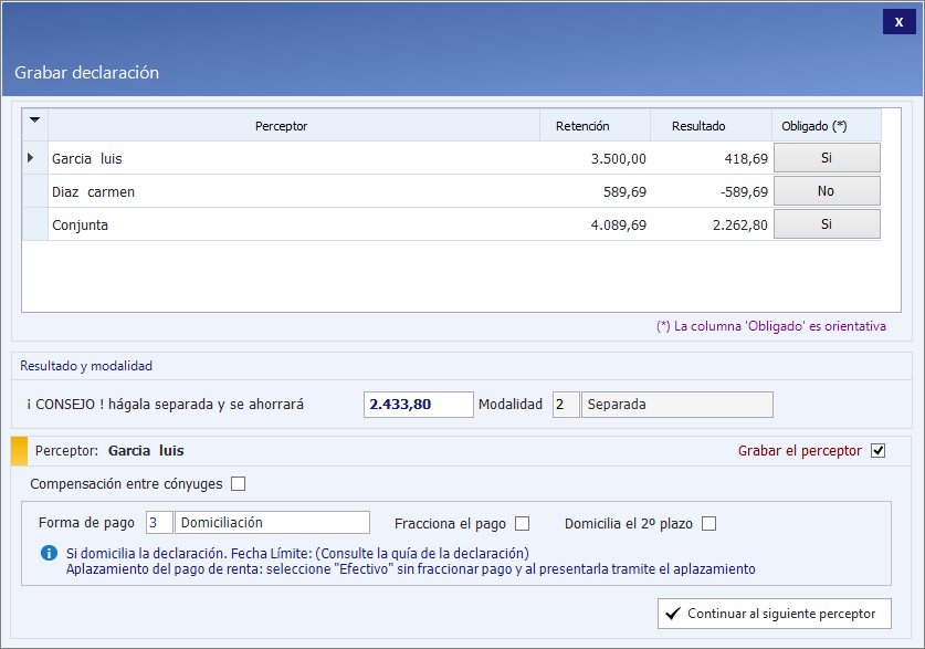 En el caso de declaración a ingresar tendrá que indicar la modalidad de pago: domiciliación o a ingresar.