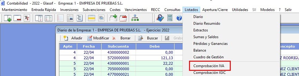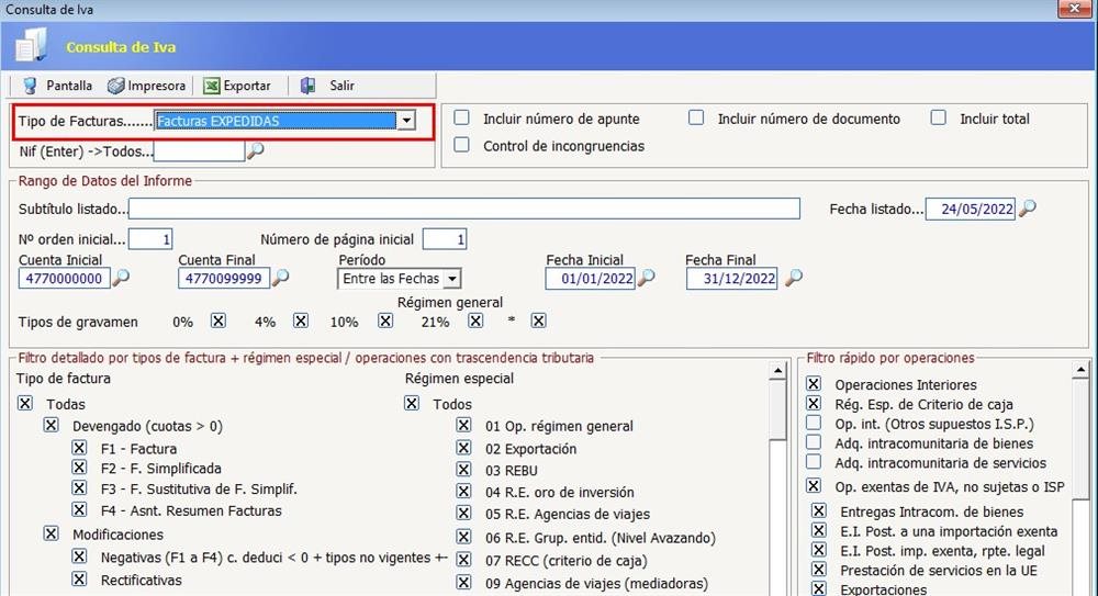 En este supuesto, emplearemos la utilidad antes mencionada. Accedemos a la empresa y consultamos los libros de IVA en relación a las facturas expedidas: