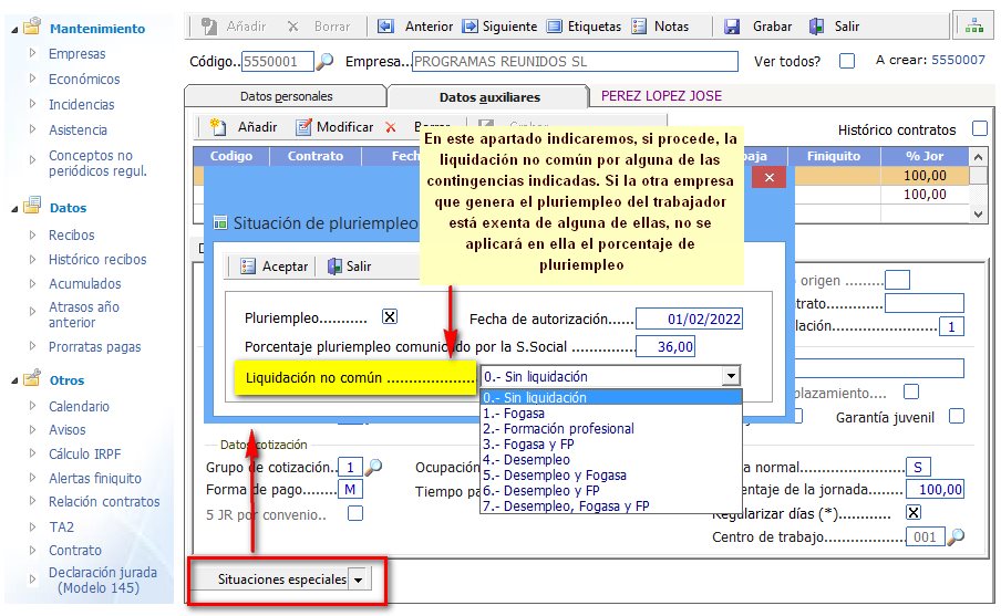 En la parte inferior del fichero de personal aparecerá una indicación de que el trabajador se encuentra en situación de pluriempleo.