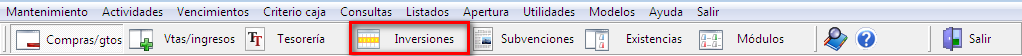 En la barra de herramientas accedemos al fichero de Inversiones: