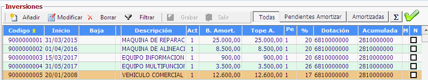 Si el importe acumulado coincide con lo registrado en el libro de inversiones y amortizaciones, entonces ya tenemos la inversión correctamente configurada en la aplicación para continuar sus amortizaciones y registradas en el libro las amortizaciones desde la fecha de alta.