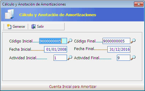 Cuando solicitemos amortizaciones la aplicación calculará desde la fecha de inicio a la fecha final. Si son varios años, cada año lo hará desde la misma fecha de inicio. Por ejemplo, en el caso anterior cada año amortizará desde el 1 de enero a 31 de diciembre. Si indicáramos desde el 20 de enero de 2008 a 31 de diciembre de 2010, cada año amortizaría desde el 20 de enero a 31 de diciembre.