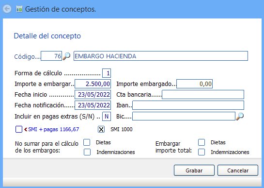 Para que el programa nos calcule el importe máximo embargable, procederemos como se muestra a continuación: