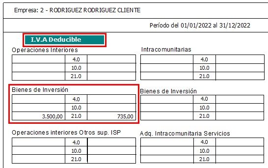Si utilizamos una cuenta de inversiones (grupo 900) la aplicación nos mostrará una casilla activada indicando que la cuota de IVA es de un bien de inversión.