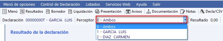 En la pantalla de la declaración puede seleccionar la opción de visualización indicando el perceptor individual o conjunta (ambos):