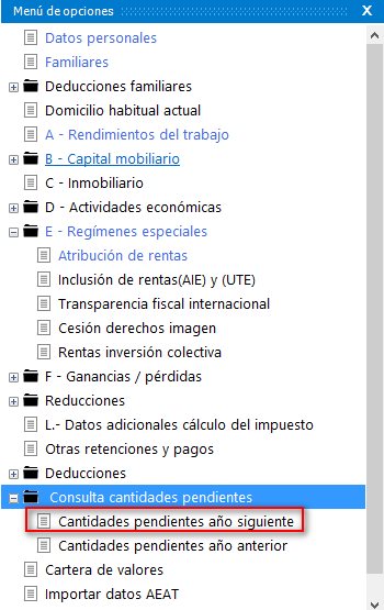 Los importes que queden pendientes para ejercicios futuros se mostrarán en el apartado de "Consulta cantidades pendientes" del menú siempre que la renta haya sido grabada.