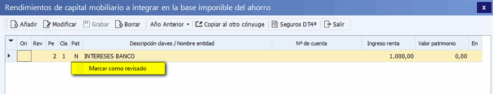 Situados en un dato pulsando con el botón derecho del ratón se habilita una casilla para indicar si el dato está revisado o no.