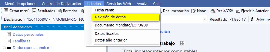Posteriormente en Listados > Revisión de datos podrá obtener un listado de estos datos.